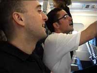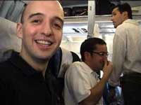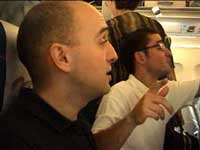 Manolo y Eduard en el avión, ligando con las azafatas.